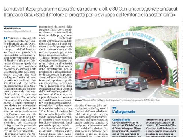 Sul Giornale di Vicenza di oggi un articolo, a firma di Matteo Carollo, in merito all’incontro svoltosi lo scorso giovedì presso la sede scledense di …
